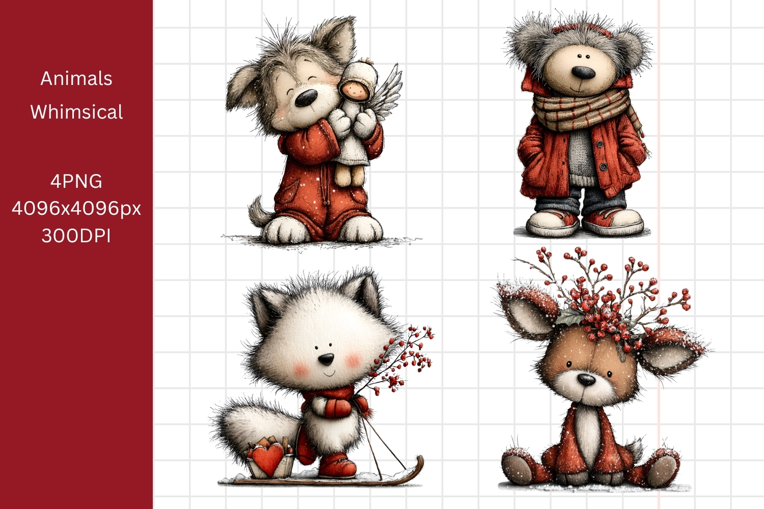 Christmas Animals Clipart, Whimsical