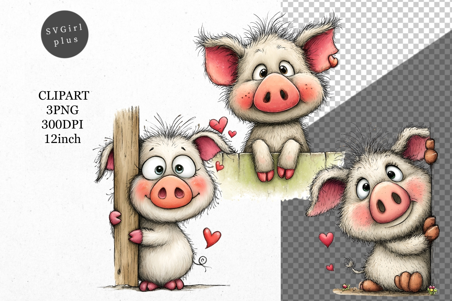Similar Design Products to Pig Clipart, Whimsical Clipart,