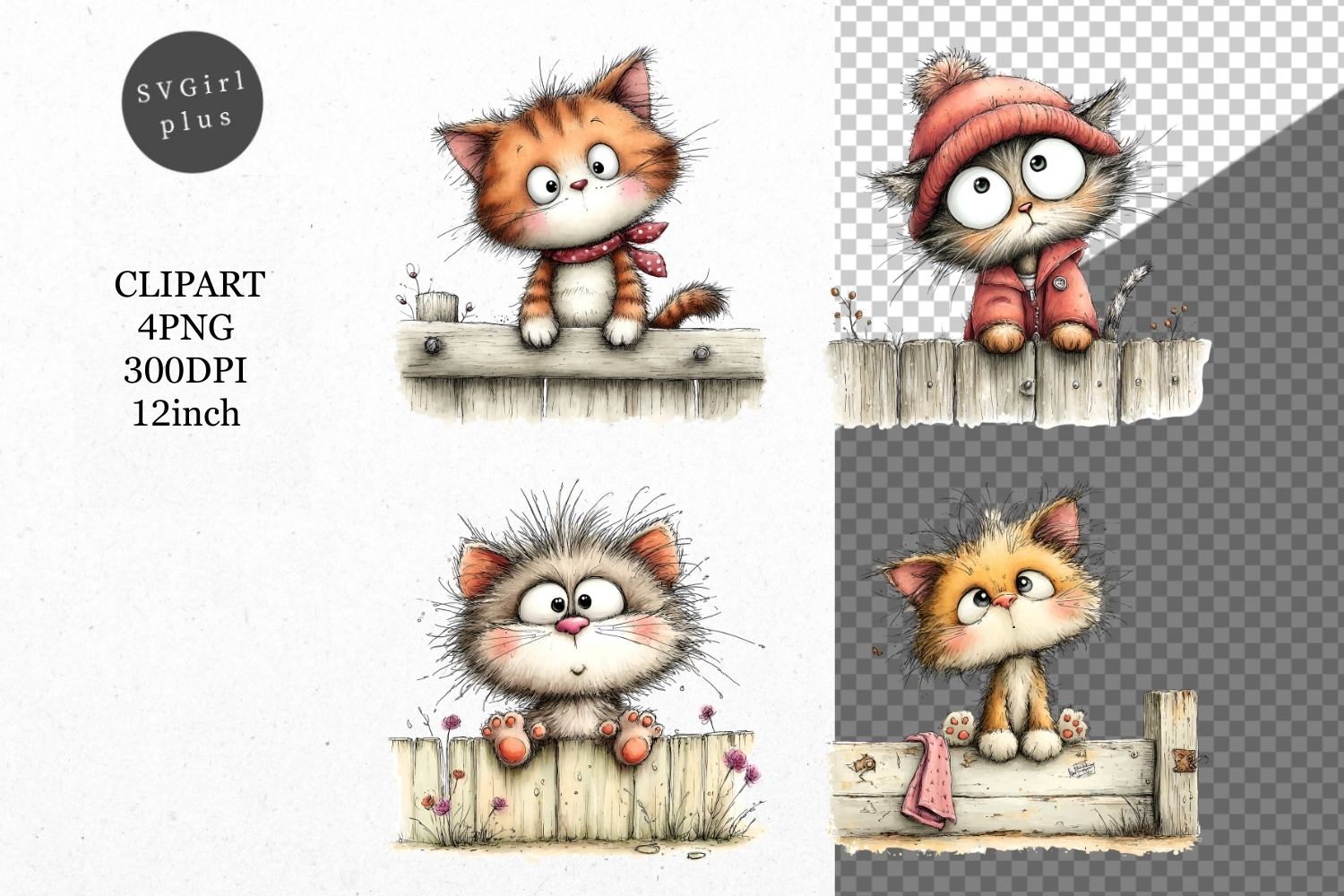 Kitten Clipart, Whimsical Clipart,