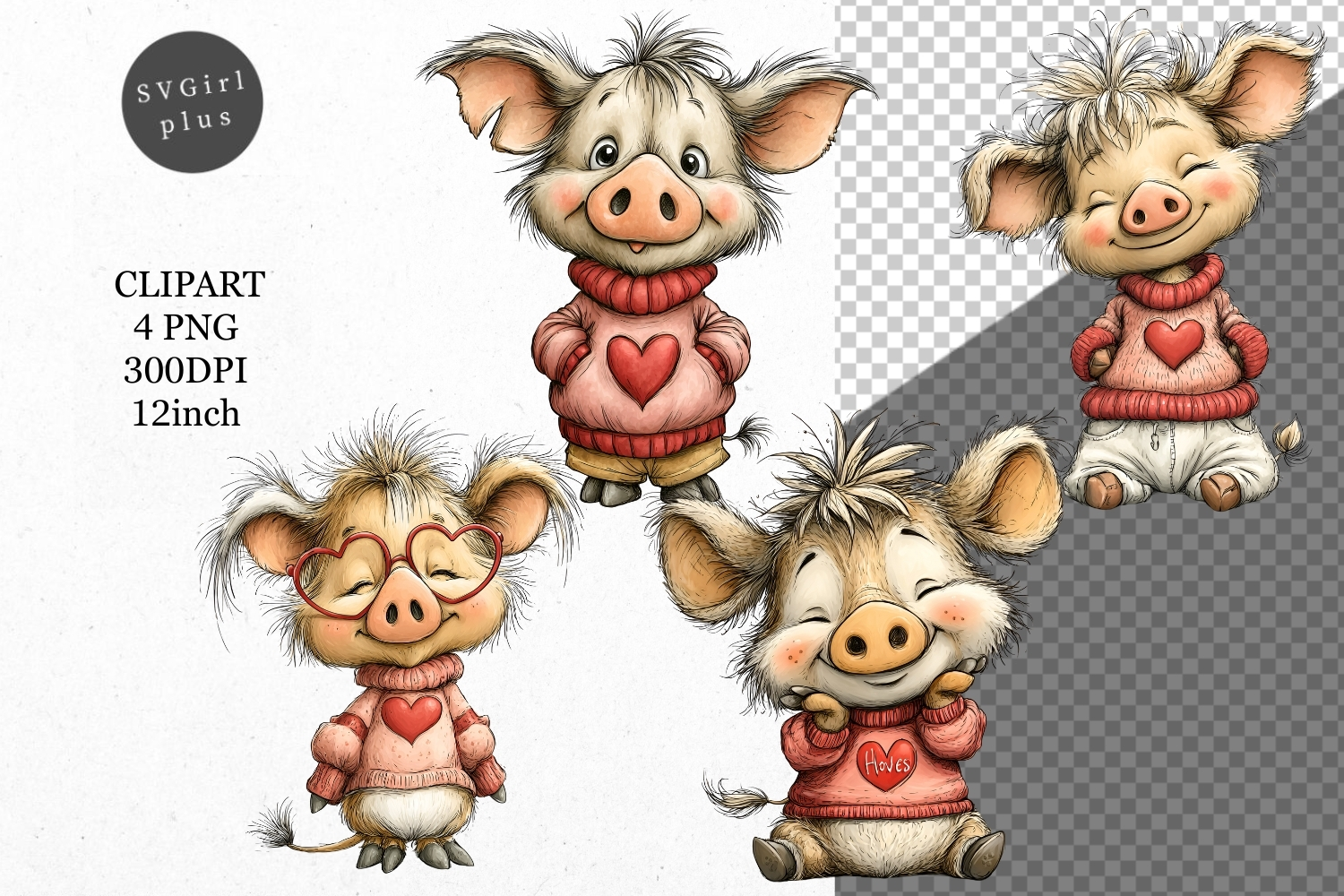 Similar Design Products to Pig Clipart, Valentines Day Clipart, Whimsical Clipart