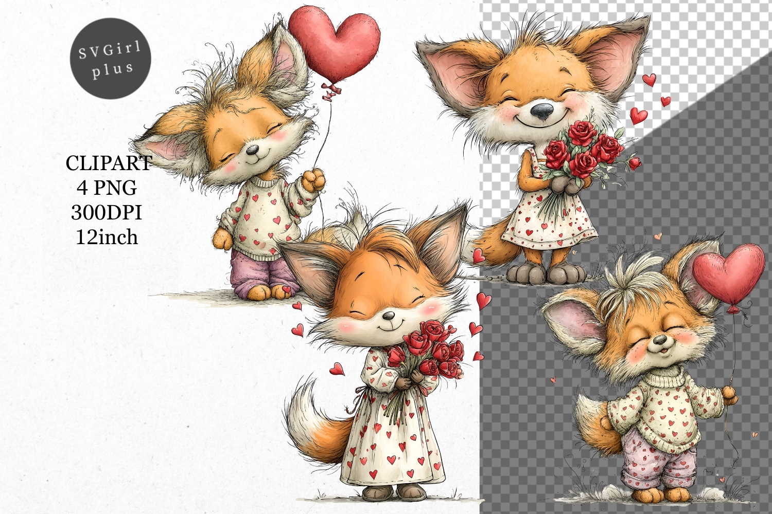 Similar Design Products to Fox Clipart, Valentines Day Clipart, Whimsical Clipart