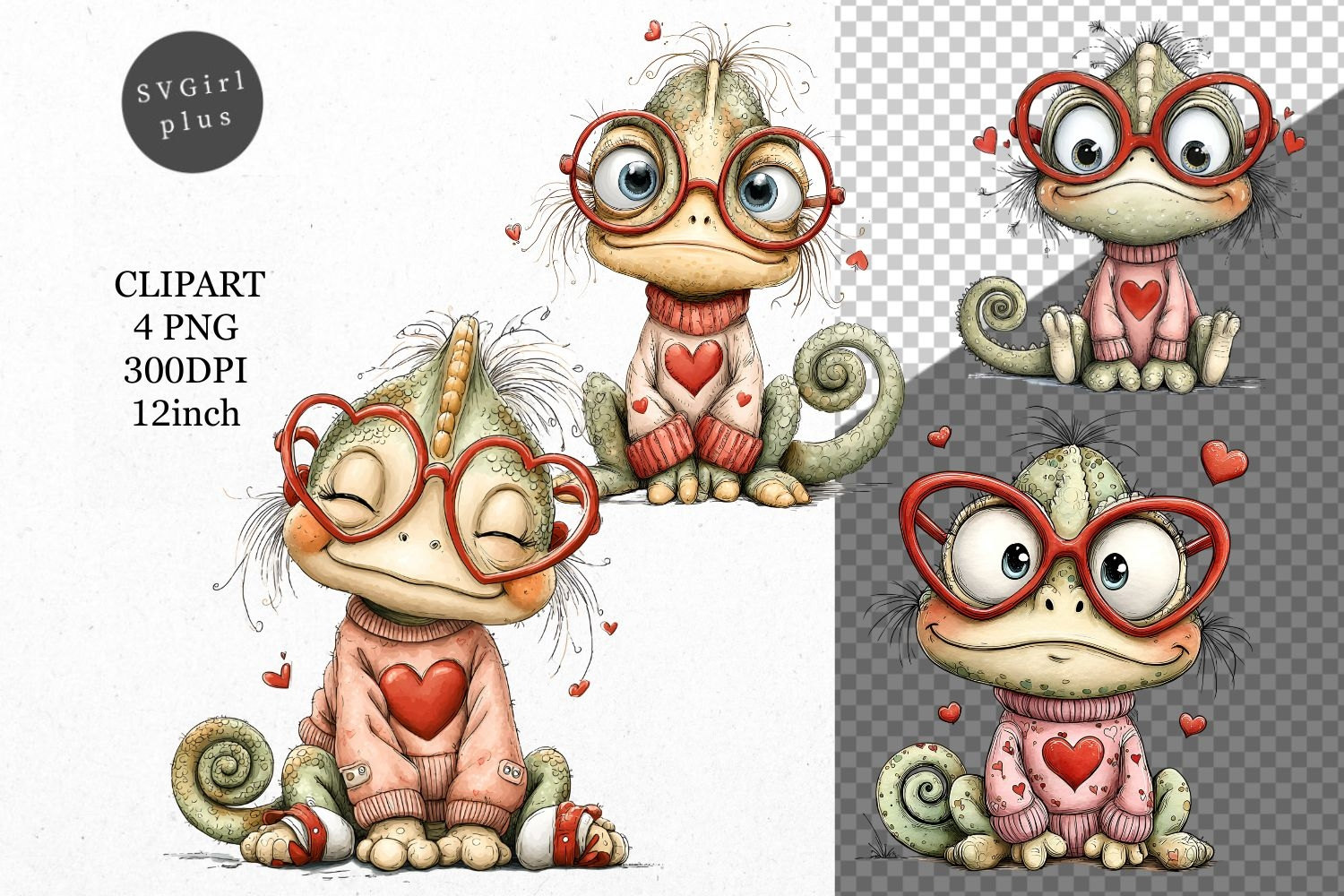 Lizard Clipart, Valentines Day Clipart, Whimsical Clipart, example image 1