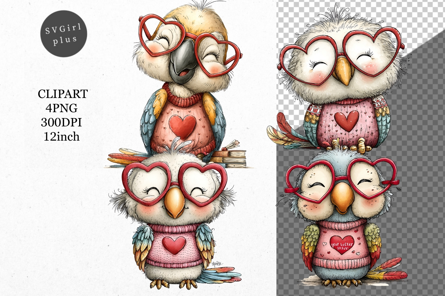 Similar Design Products to Parrot Clipart, Valentines Day Clipart, Whimsical Clipart
