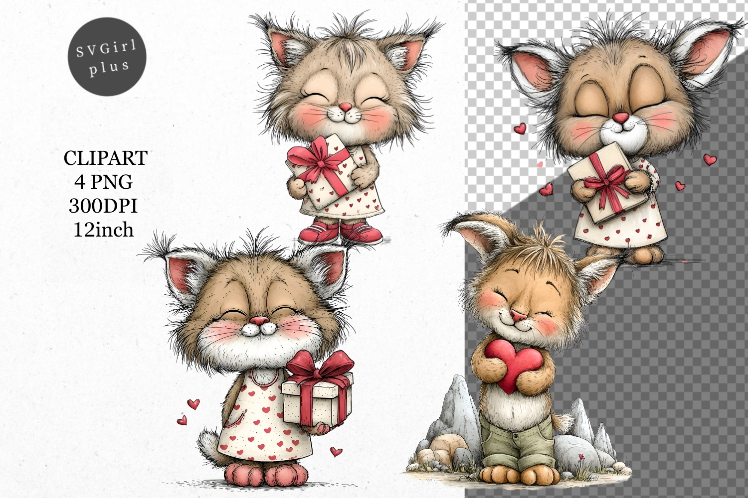 Similar Design Products to Lynx Clipart, Valentines Day Clipart, Whimsical Clipart,