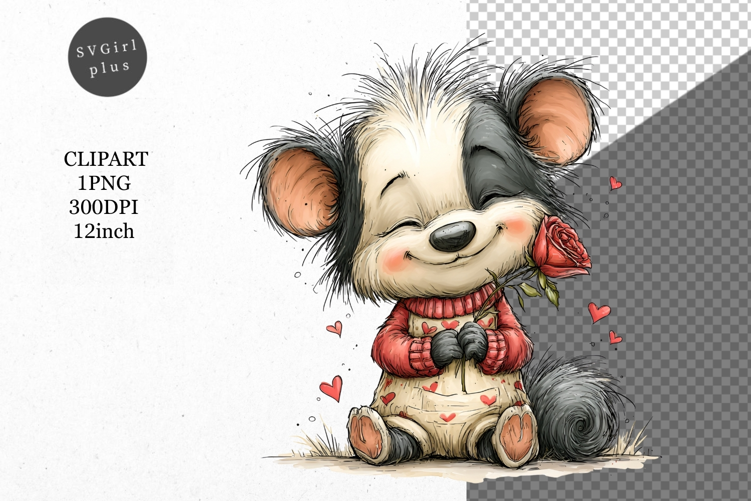 Similar Design Products to Skunk Clipart, Valentines Day Clipart, Whimsical Clipart,