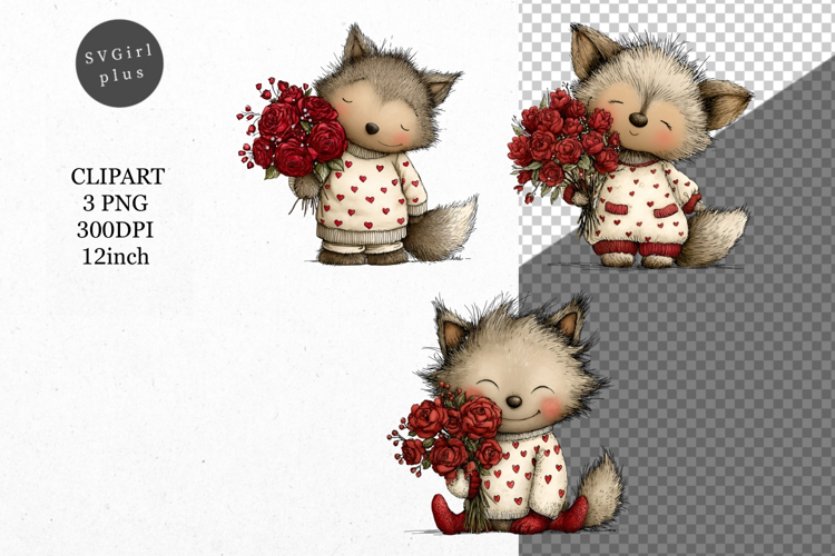 Similar Design Products to Wolf Clipart, Valentines Day Clipart, Whimsical Clipart,
