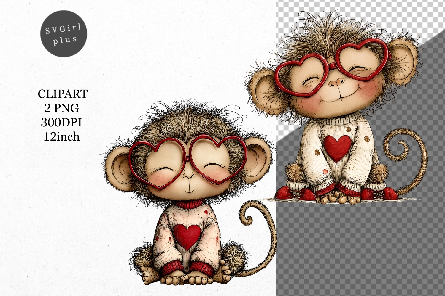 Similar Design Products to Monkey Clipart, Valentines Day Clipart, Whimsical Clipar