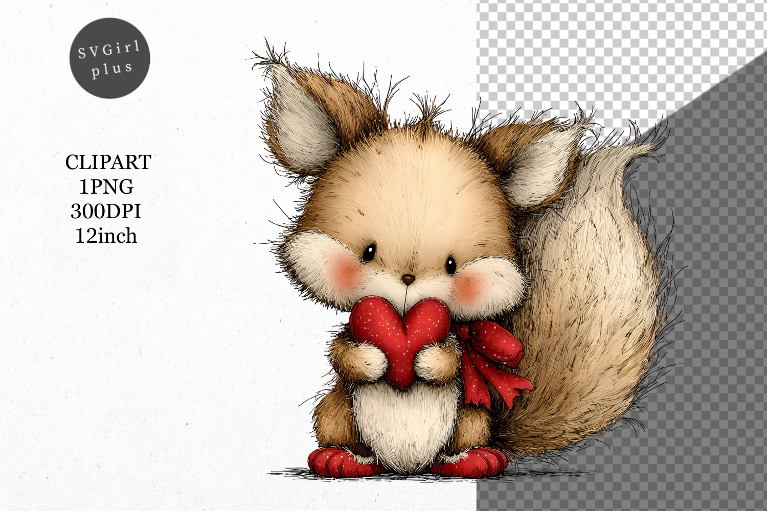 Squirrel Clipart, Valentines Day Clipart, Whimsical Clipart, example image 1