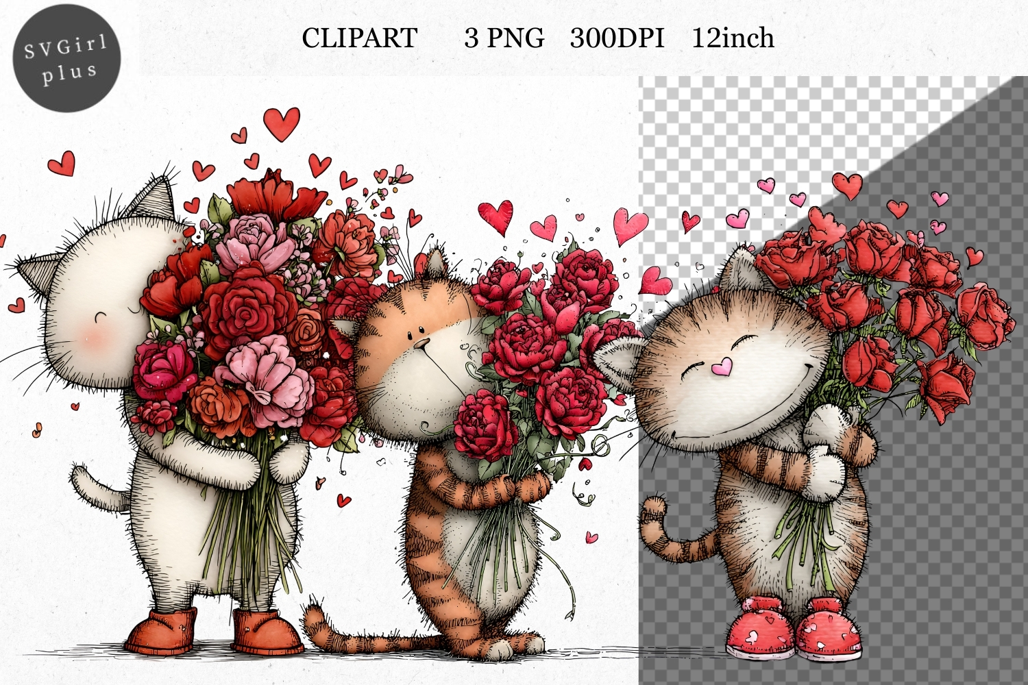 Similar Design Products to Cat Clipart, Valentines Day Clipart, Whimsical Clipar