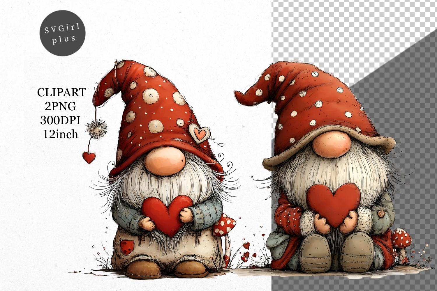 Similar Design Products to Gnome Clipart, Valentines Day Clipart, Whimsical Clipart