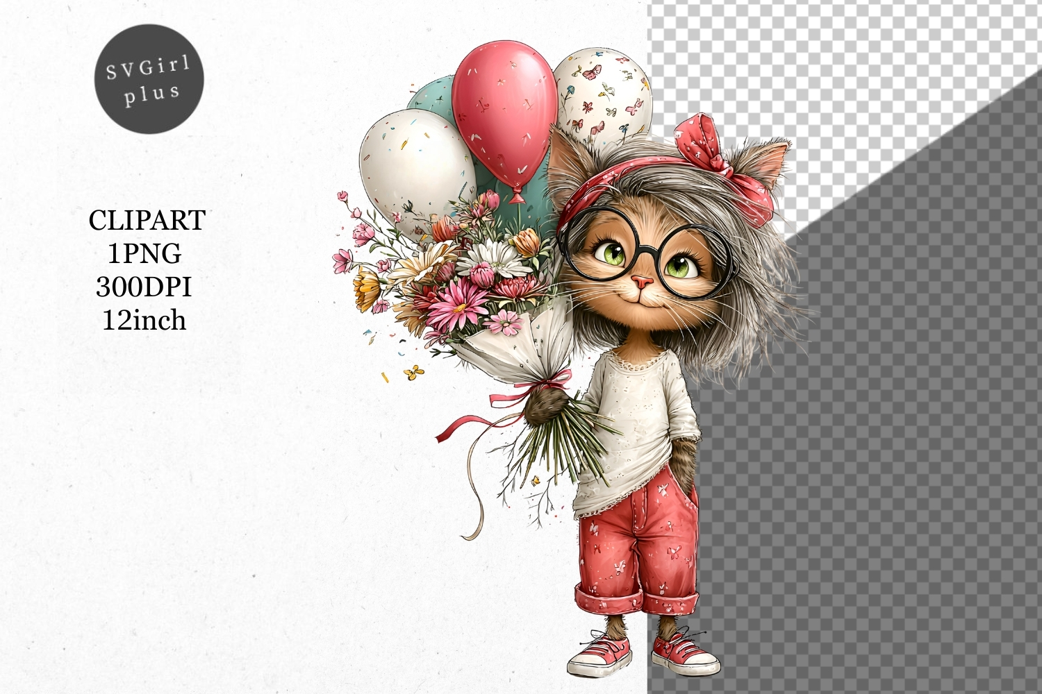 Similar Design Products to Cat Clipart, Valentines Day Clipart, Whimsical Clipart,