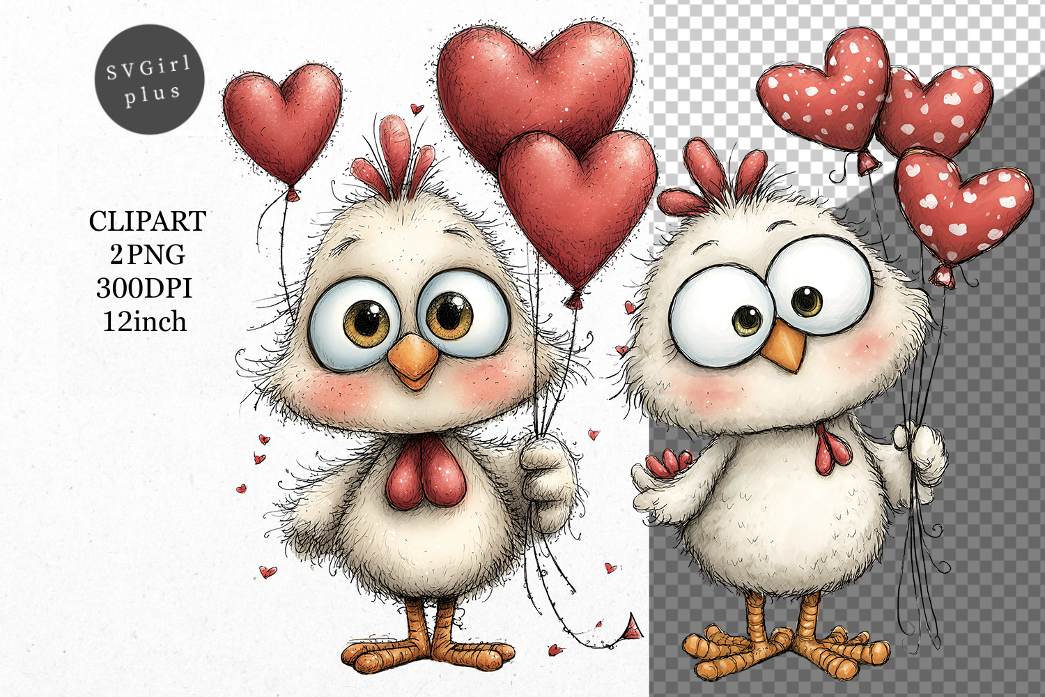 Similar Design Products to Chicken Clipart, Valentines Day Clipart, Whimsical Clipart,