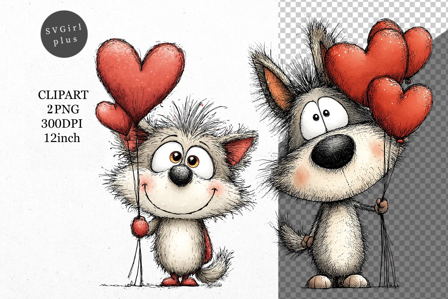 Similar Design Products to Wolf Clipart, Valentines Day Clipart, Whimsical Clipart,