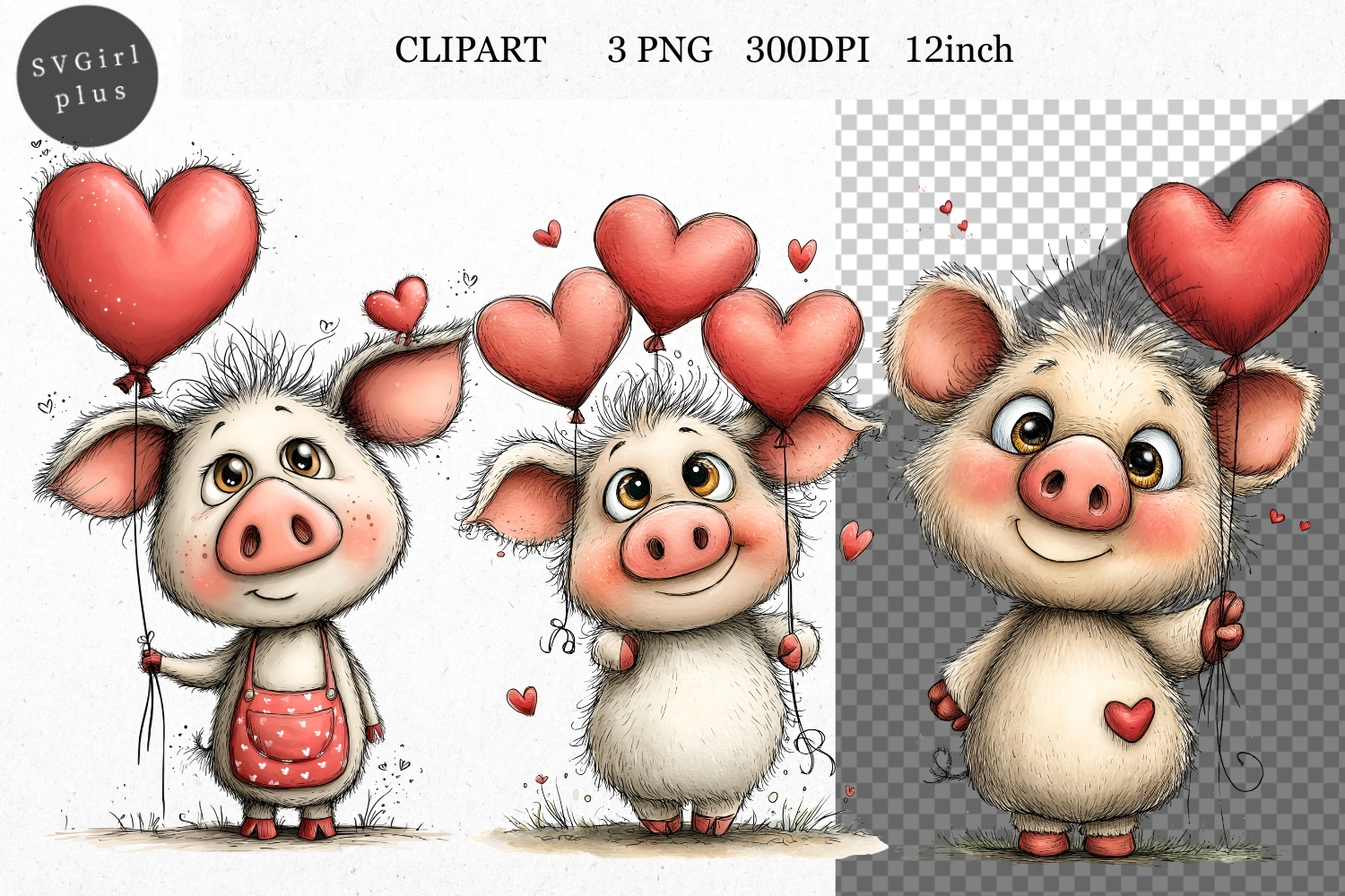 Similar Design Products to Pig Clipart, Valentines Day Clipart, Whimsical Clipart,