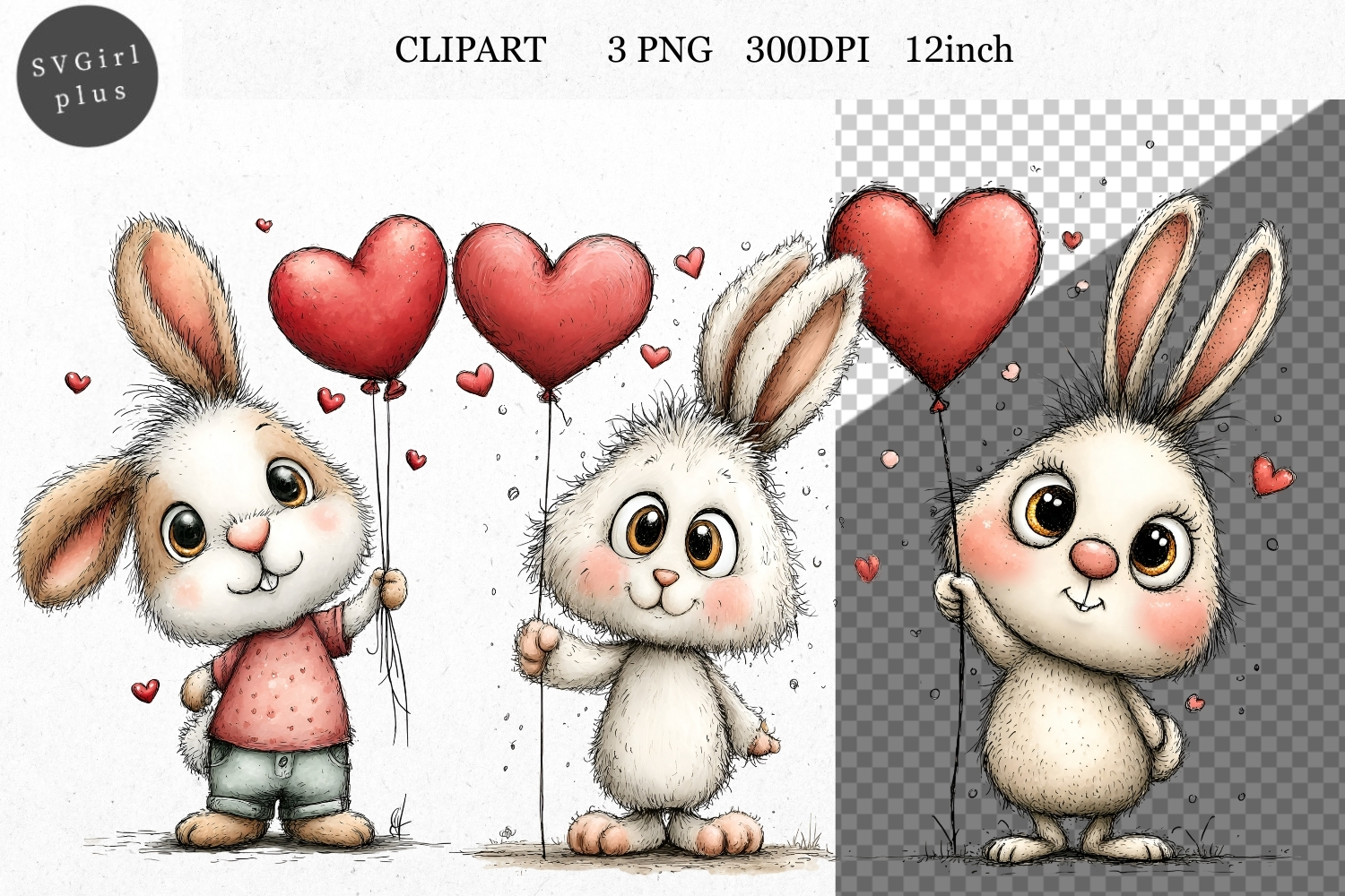 Similar Design Products to Bunny Clipart, Valentines Day Clipart, Whimsical Clipart,