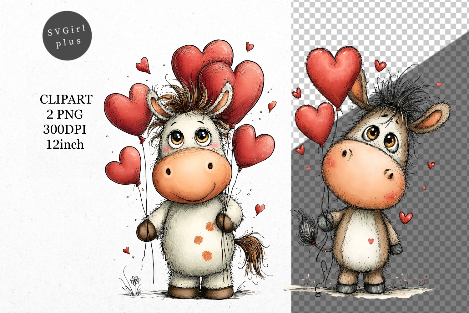 Similar Design Products to Horse Clipart, Valentines Day Clipart, Whimsical Clipart,