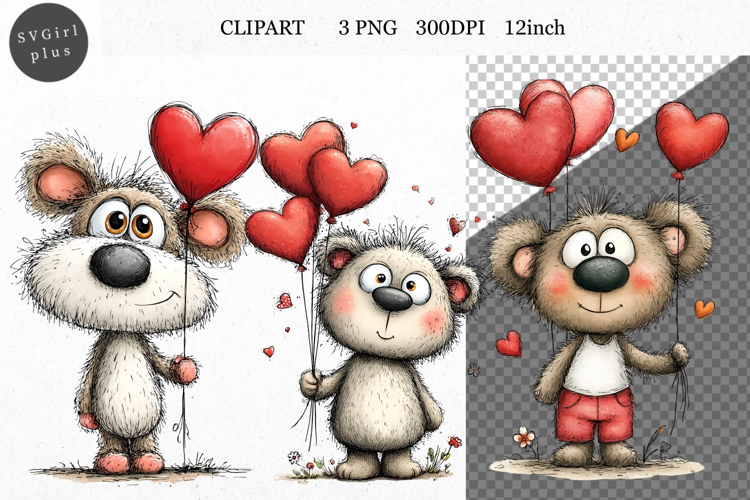 Similar Design Products to Teddy Bear Clipart, Valentines Day Clipart, Whimsical Clipar