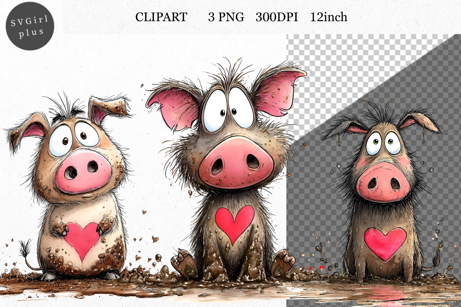Similar Design Products to Pig Clipart, Valentines Day Clipart, Whimsical Clipart,