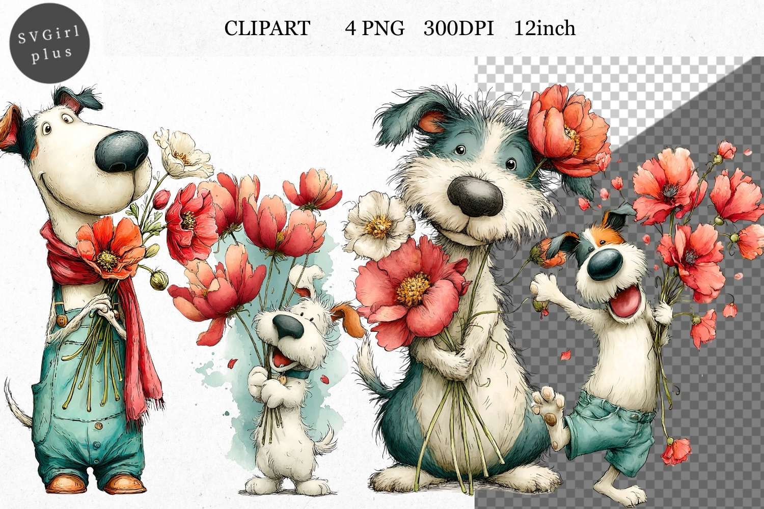 Similar Design Products to Dog Clipart, Valentines Day Clipart, Whimsical Clipart