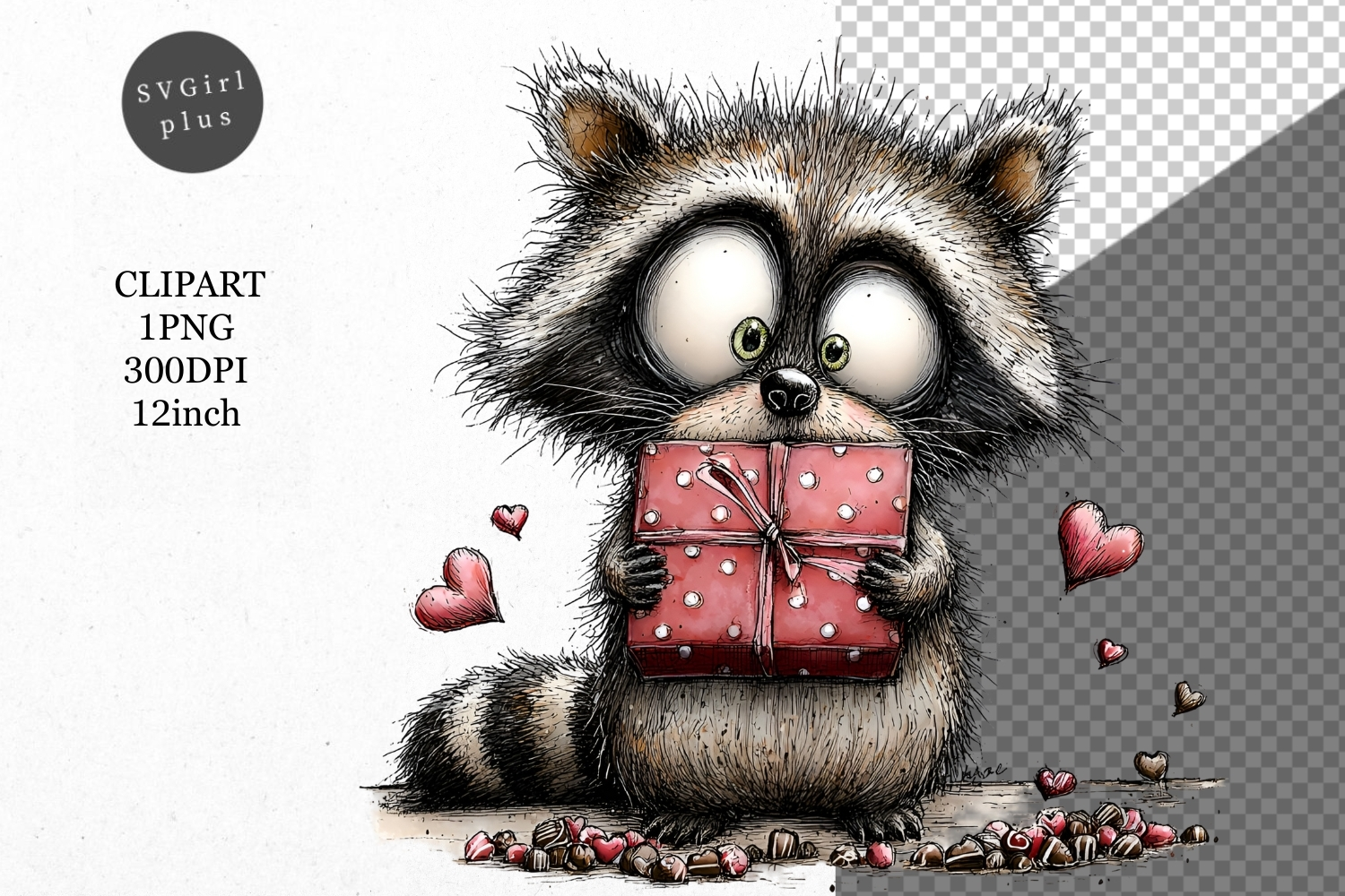Similar Design Products to Raccoon Clipart, Valentines Day Clipart, Whimsical Clipart