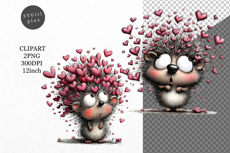 Similar Design Products to Hedgehog Clipart, Valentines Day Clipart, Whimsical Clipart