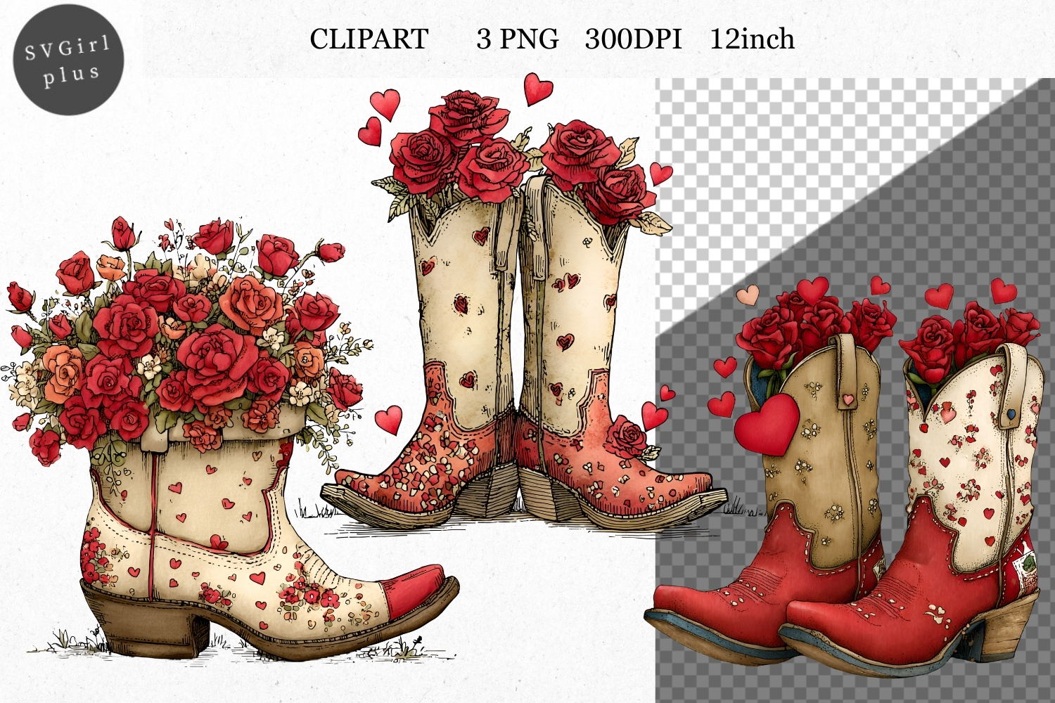 Boots Clipart, Valentines Day Clipart, Whimsical Clipart,