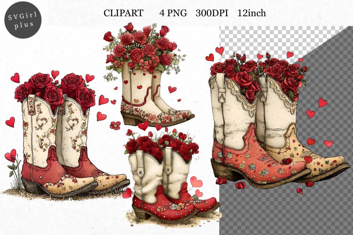 Boots Clipart, Valentines Day Clipart, Whimsical Clipart,