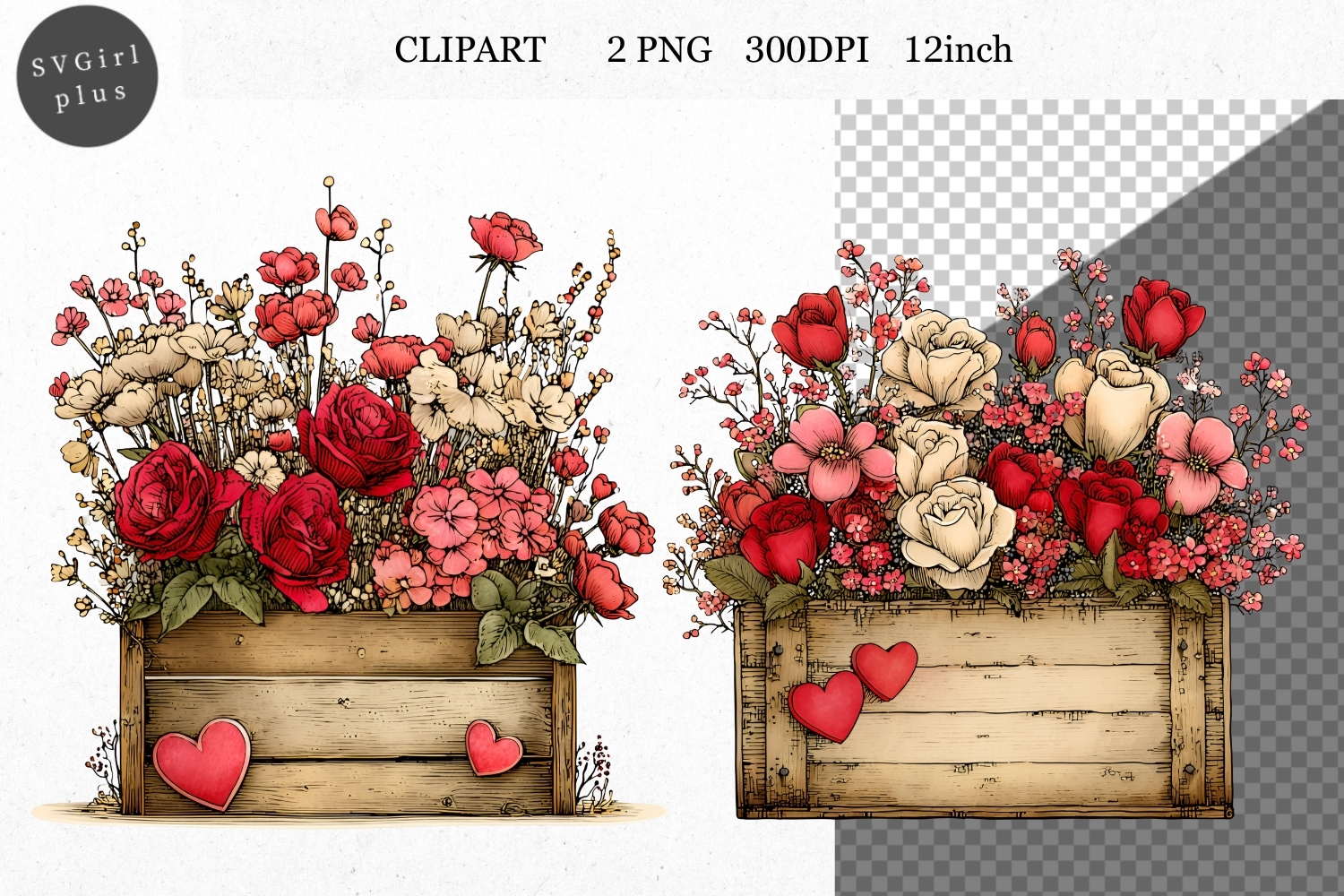 Similar Design Products to Flower Box Clipart, Valentines Day Clipart, Whimsical
