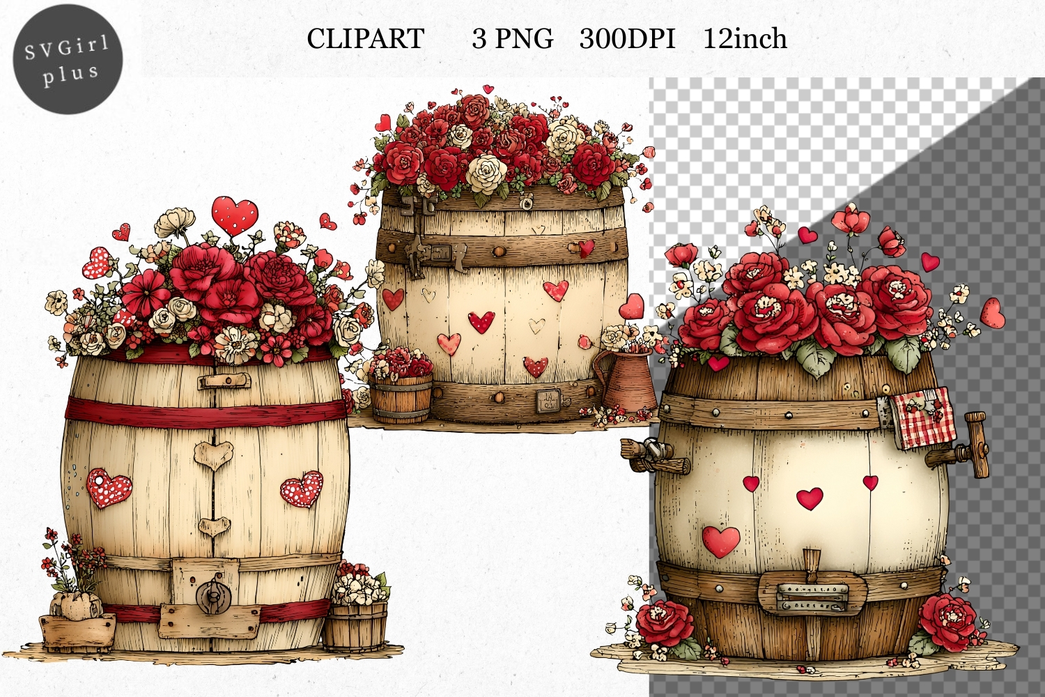 Barrel Clipart, Valentines Day Clipart, Whimsical