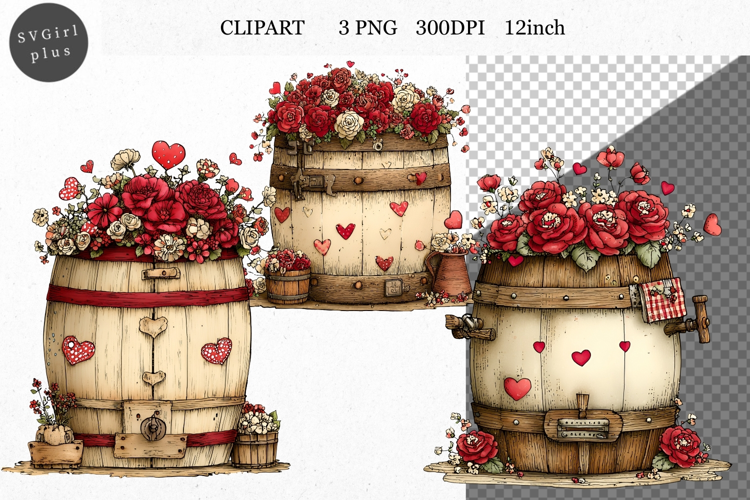 Similar Design Products to Barrel Clipart, Valentines Day Clipart, Whimsical