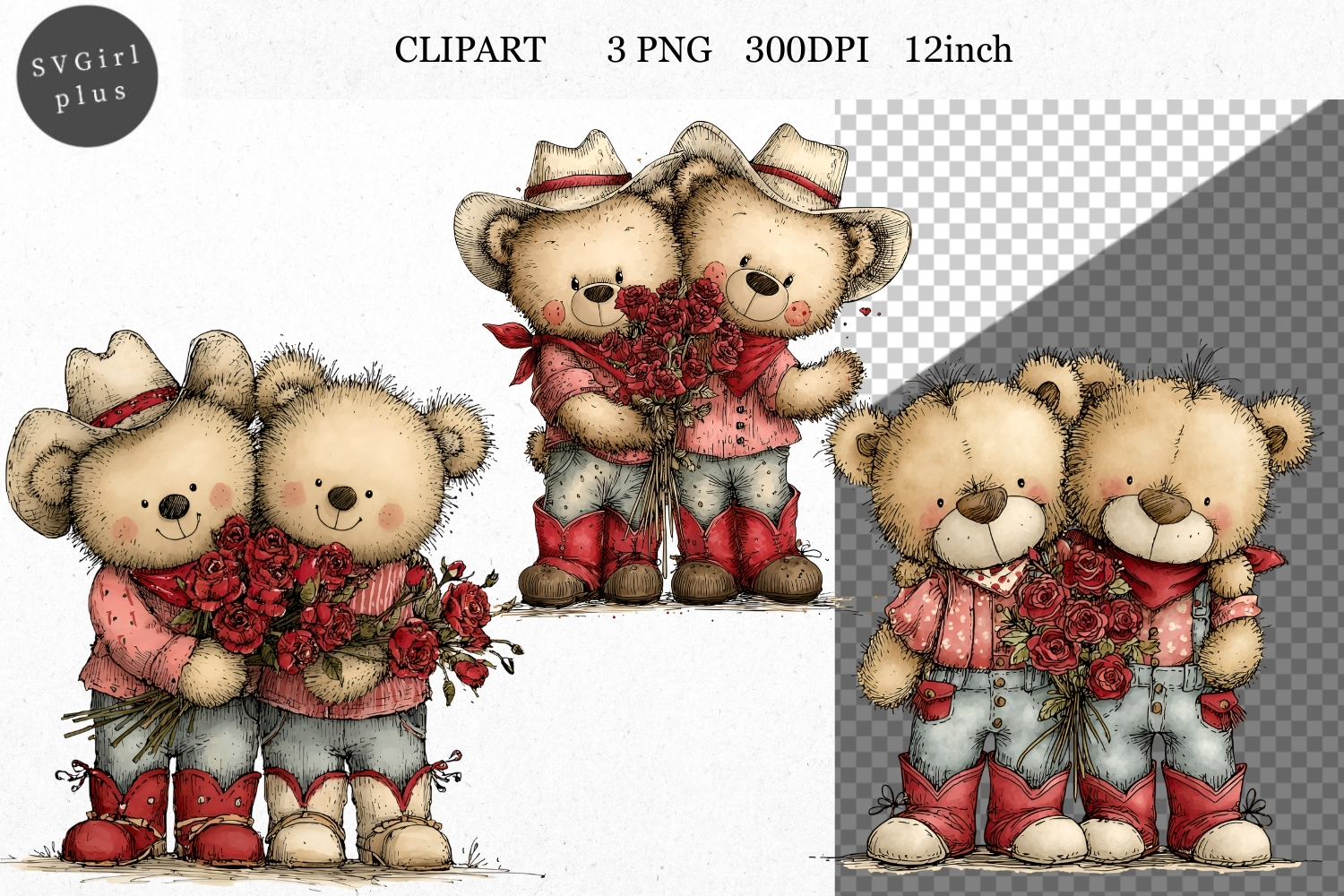 Watercolor Western Whimsical Love Valentines Day Teddy Bear Valentines Day Clipart Spring Clipart Whimsical Clipart Valentines Day Png