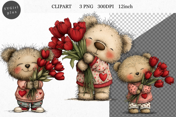Similar Design Products to Teddy Bear Clipart, Valentines Day Clipart, Whimsical Clipar