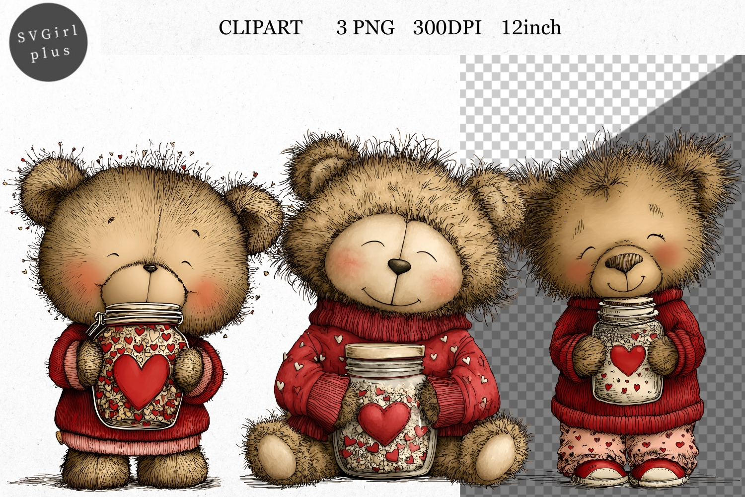 Similar Design Products to Teddy Bear Clipart, Valentines Day Clipart, Whimsical Clipar