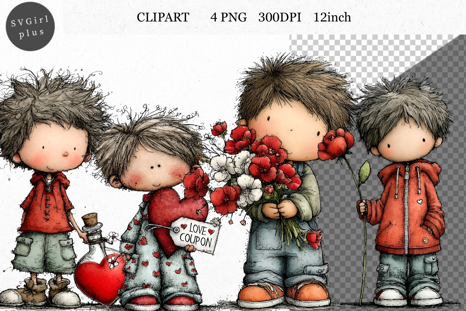 Similar Design Products to Boy Clipart, Valentines Day Clipart, Whimsical Clipart