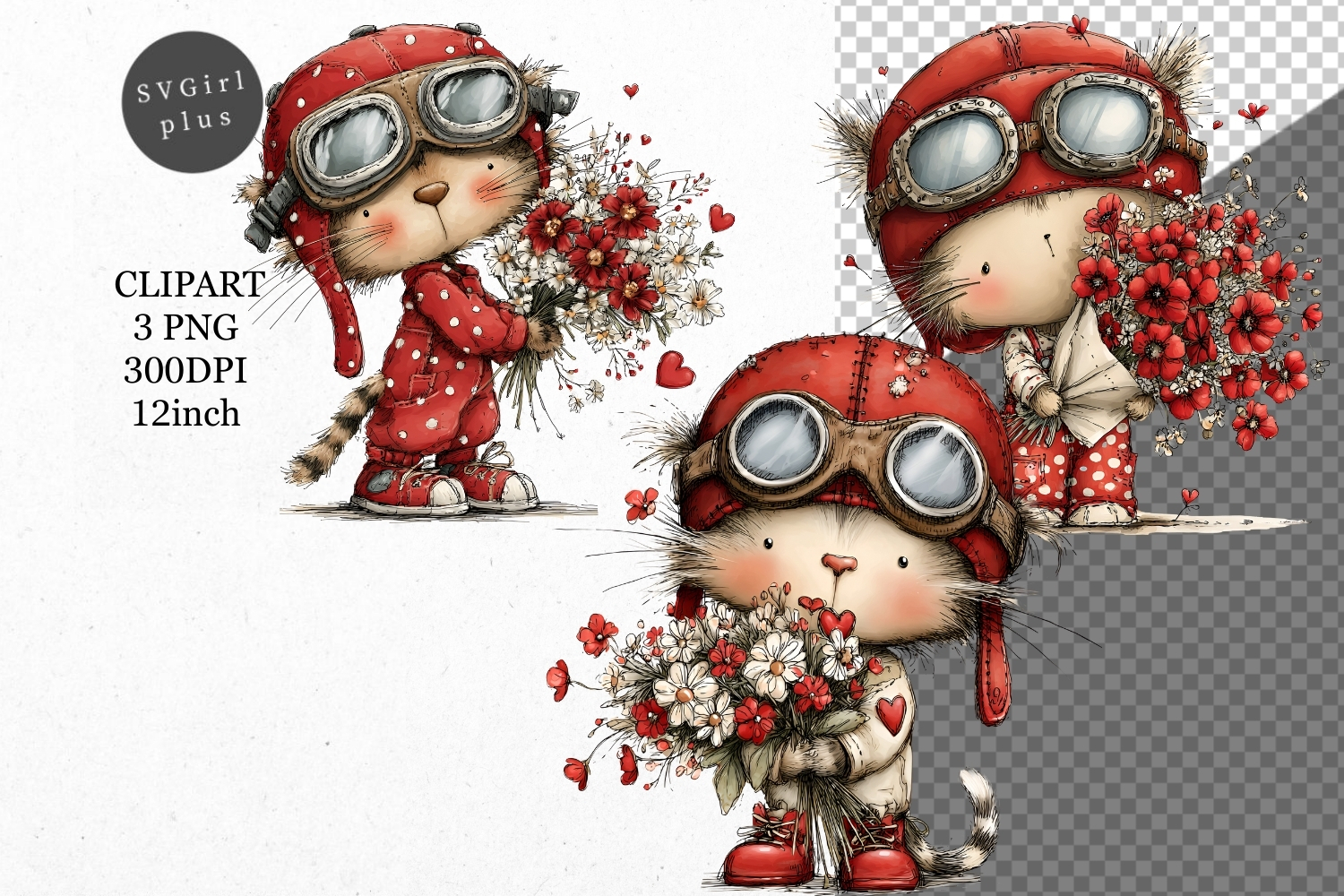 Similar Design Products to Cat Clipart, Valentines Day Clipart, Whimsical Clipart
