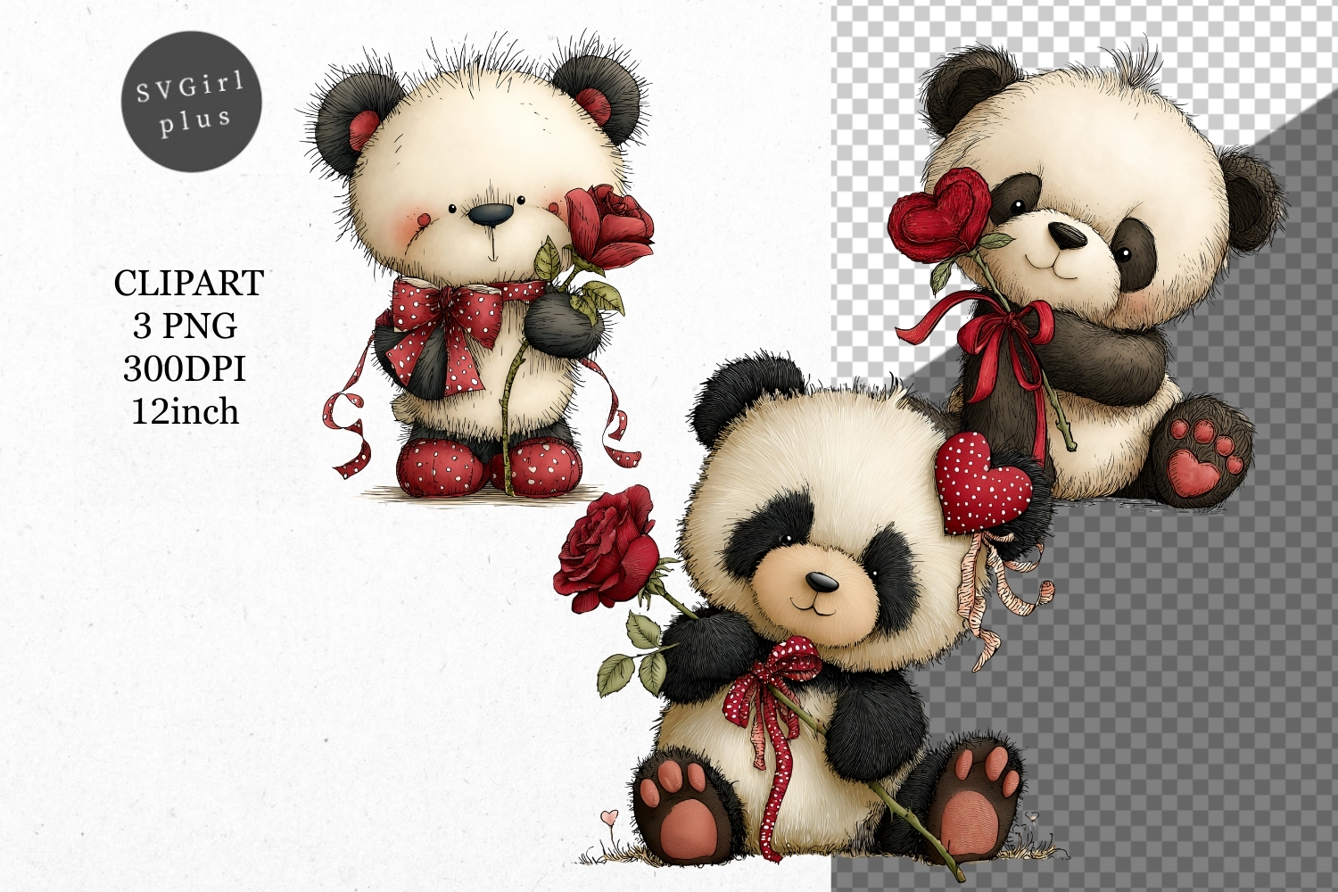 Similar Design Products to Panda Clipart, Valentines Day Clipart, Whimsical