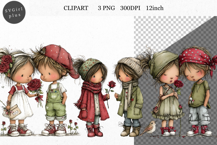 Similar Design Products to Boy and Girl Clipart, Valentines Day Clipart, Whimsical