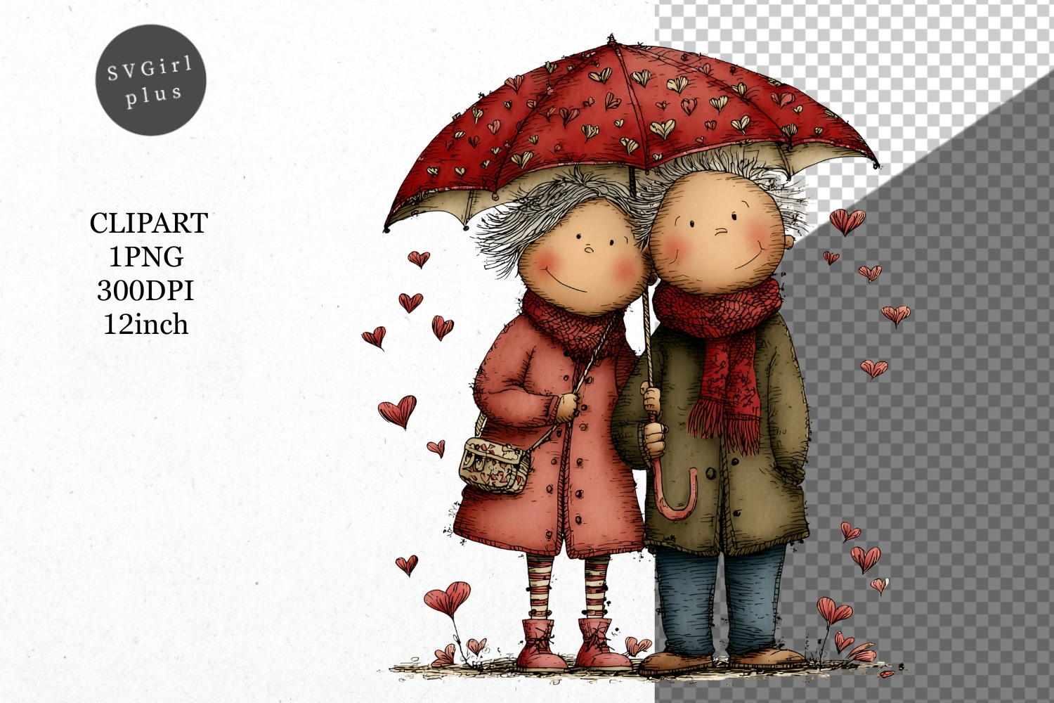 Elderly Couple Clipart, Valentines Day Clipart, Whimsical example image 1