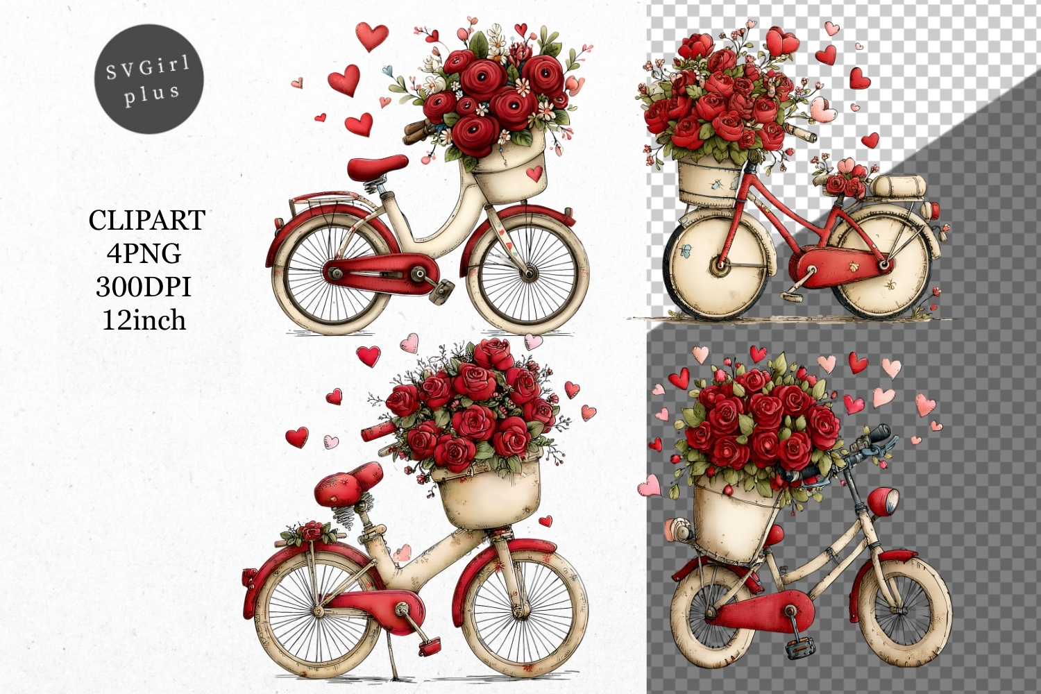 Similar Design Products to Bike Clipart, Valentines Day Clipart, Whimsical