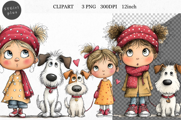 Similar Design Products to Girl and dog PNG, Girl Clipart, Whimsical Clipart