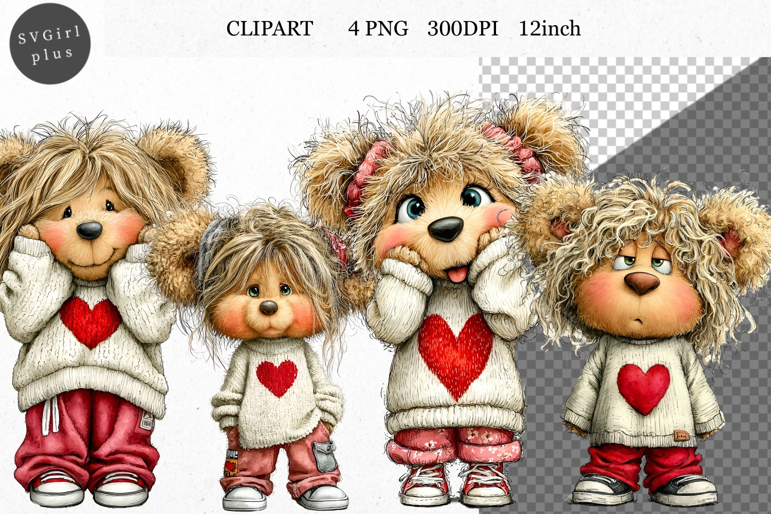 Similar Design Products to Teddy Bear Clipart, Valentines Day Clipart, Whimsical Clipar