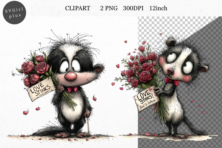 Similar Design Products to Skunk Clipart, Valentines Day Clipart, Whimsical Clipart