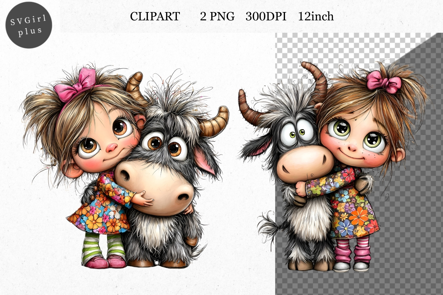 Similar Design Products to Girl and cow Clipart, Whimsical Clipart
