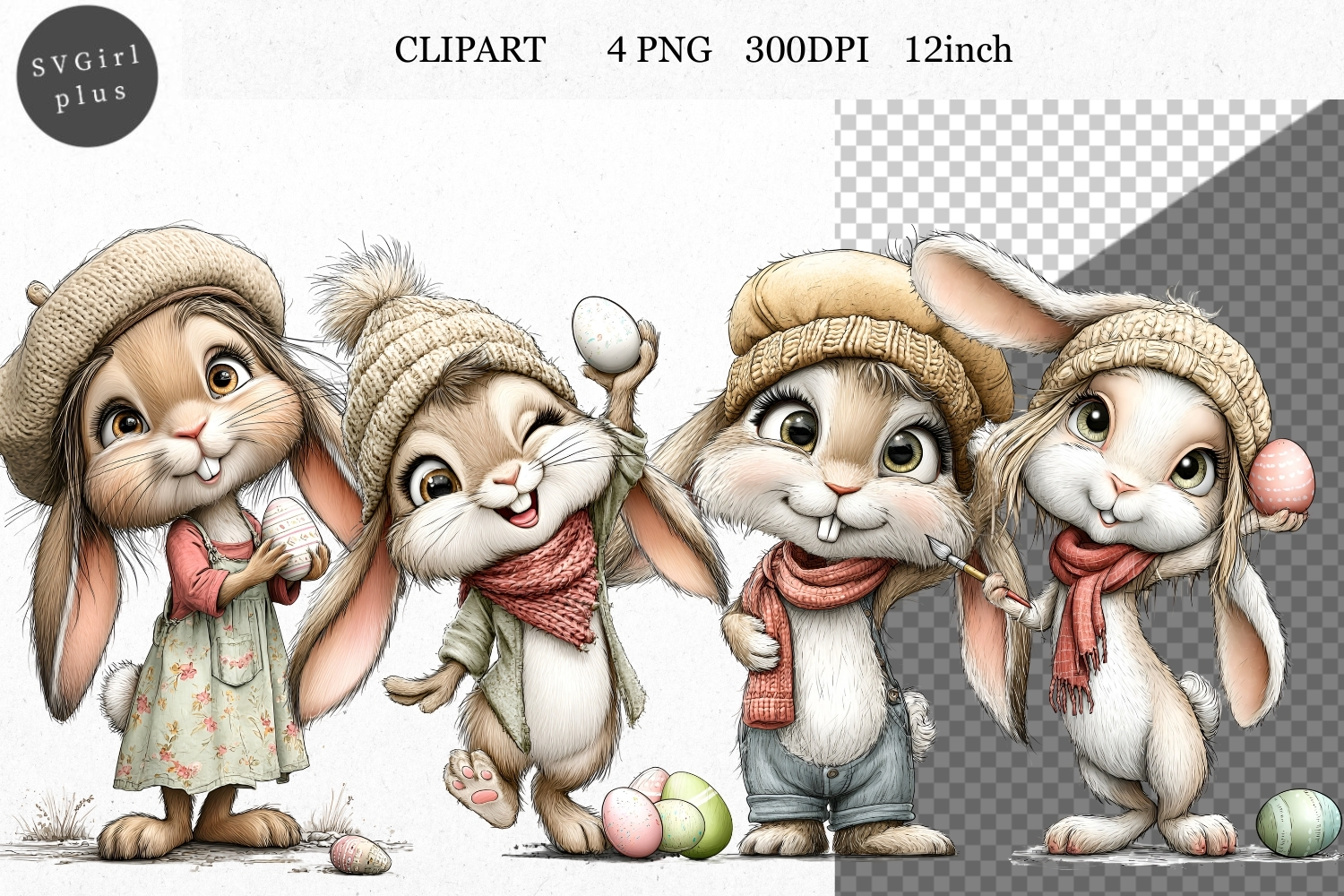 Bunny Clipart, Easter Clipart, Whimsical Clipart, example image 1