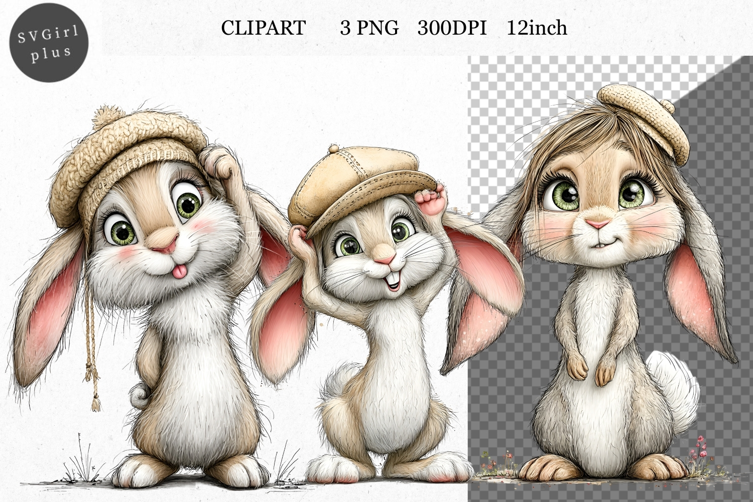 Bunny Clipart, Easter Clipart, Whimsical Clipart, example image 1
