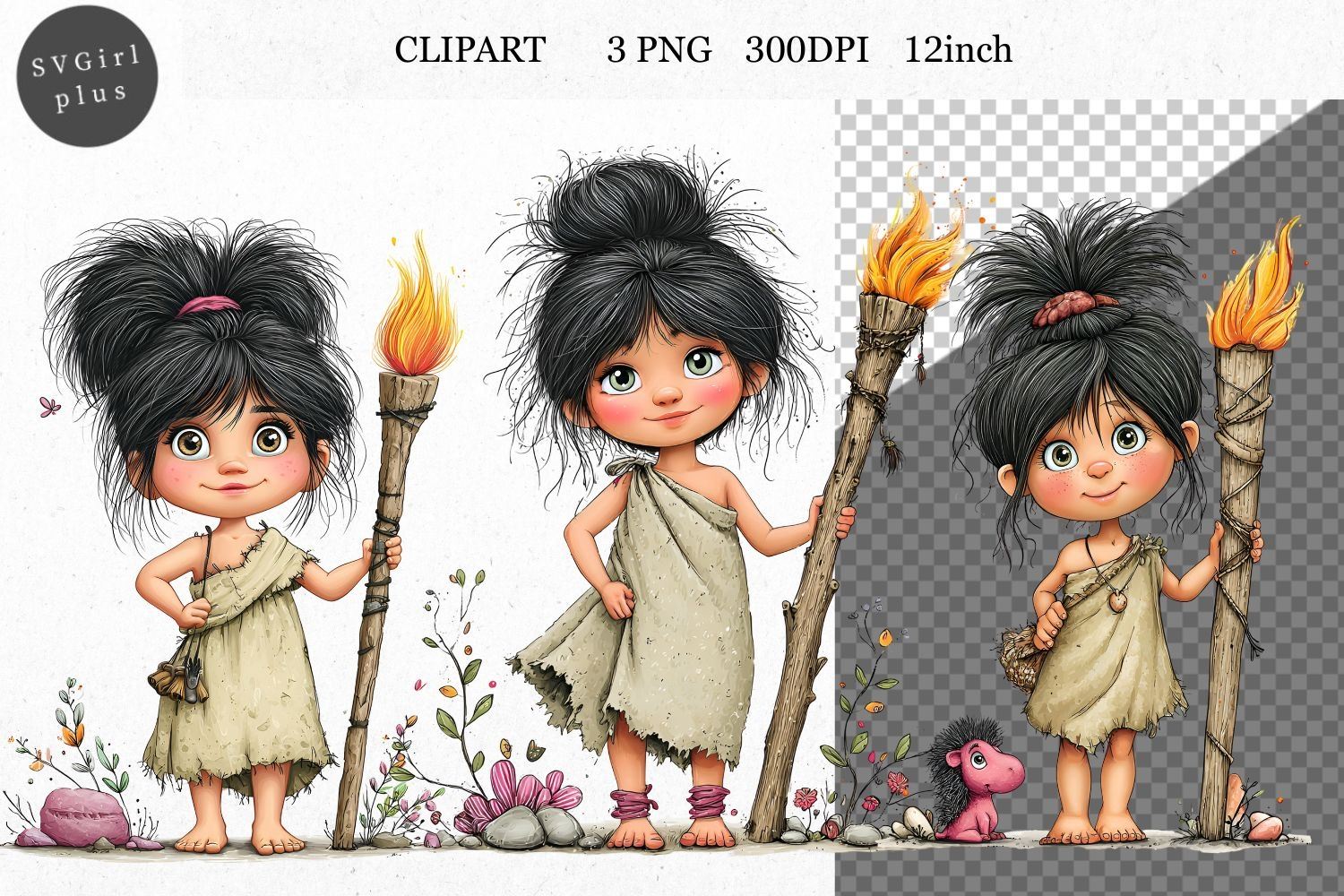 Cave Girl PNG, Girl Clipart, Whimsical Clipart