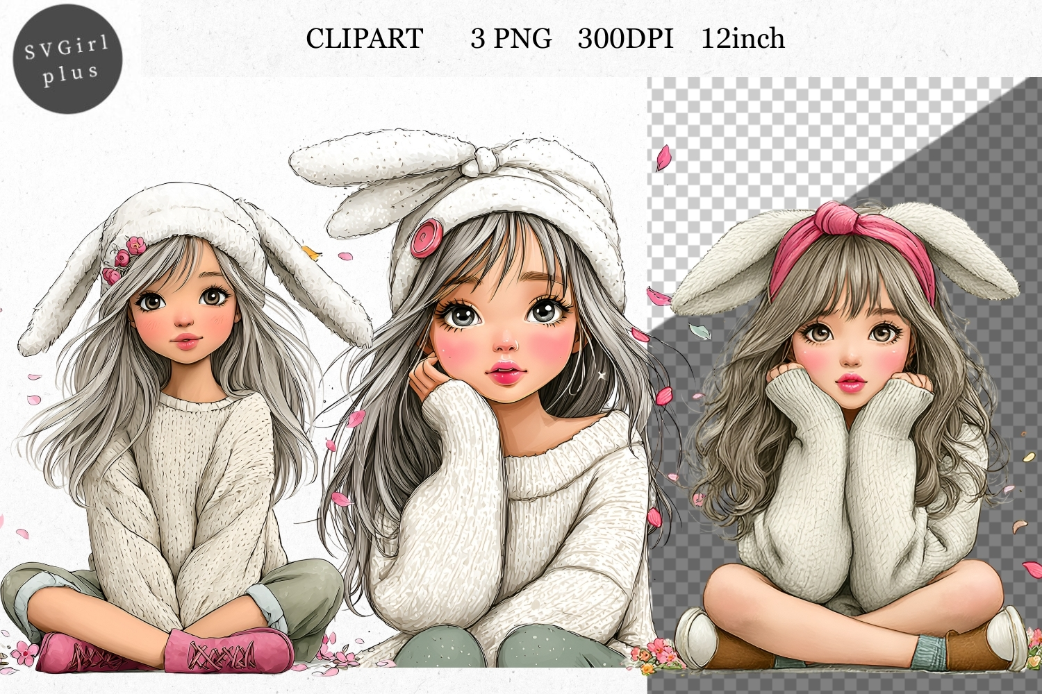 Similar Design Products to Bunny Girl PNG, Girl Clipart, Whimsical Clipart