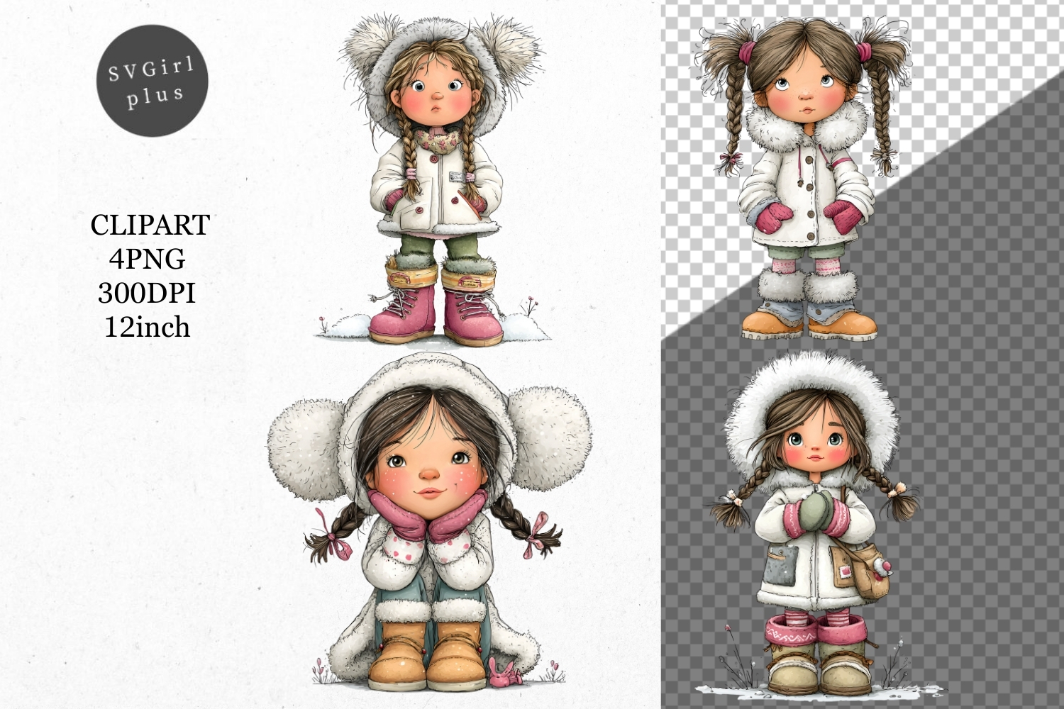 Similar Design Products to Girl PNG, Winter Girl PNG, Whimsical Clipart