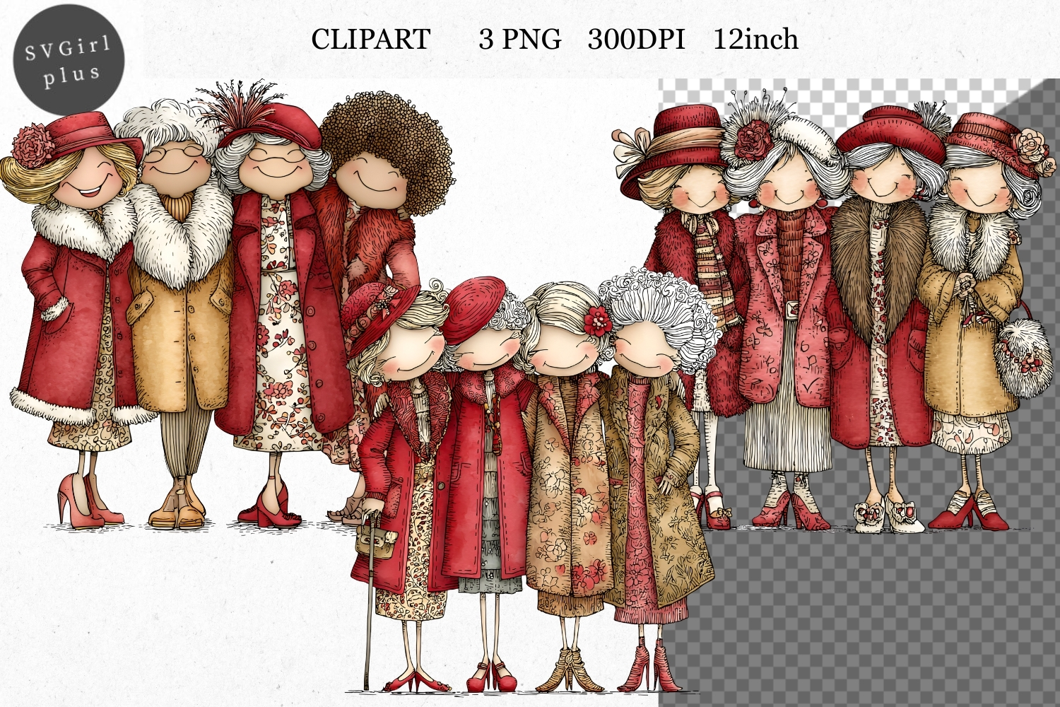 Similar Design Products to Woman PNG, Friends Clipart, Whimsical Clipart