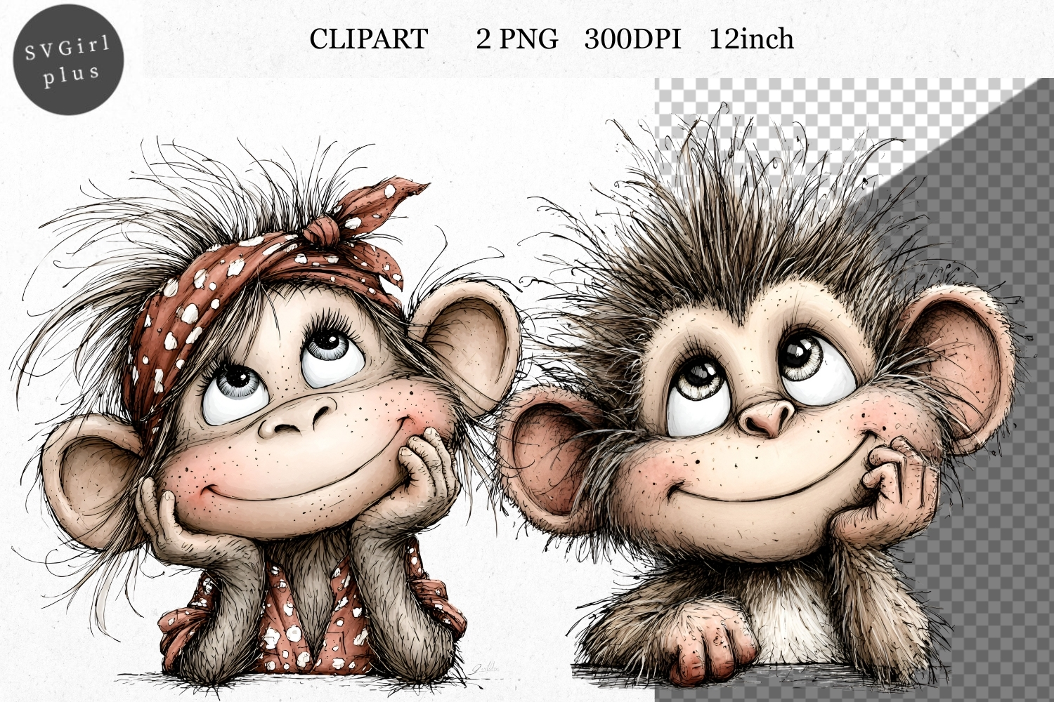Similar Design Products to Monkey Clipart, Animals Clipart, Whimsical Clipart